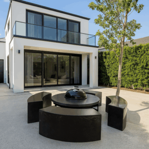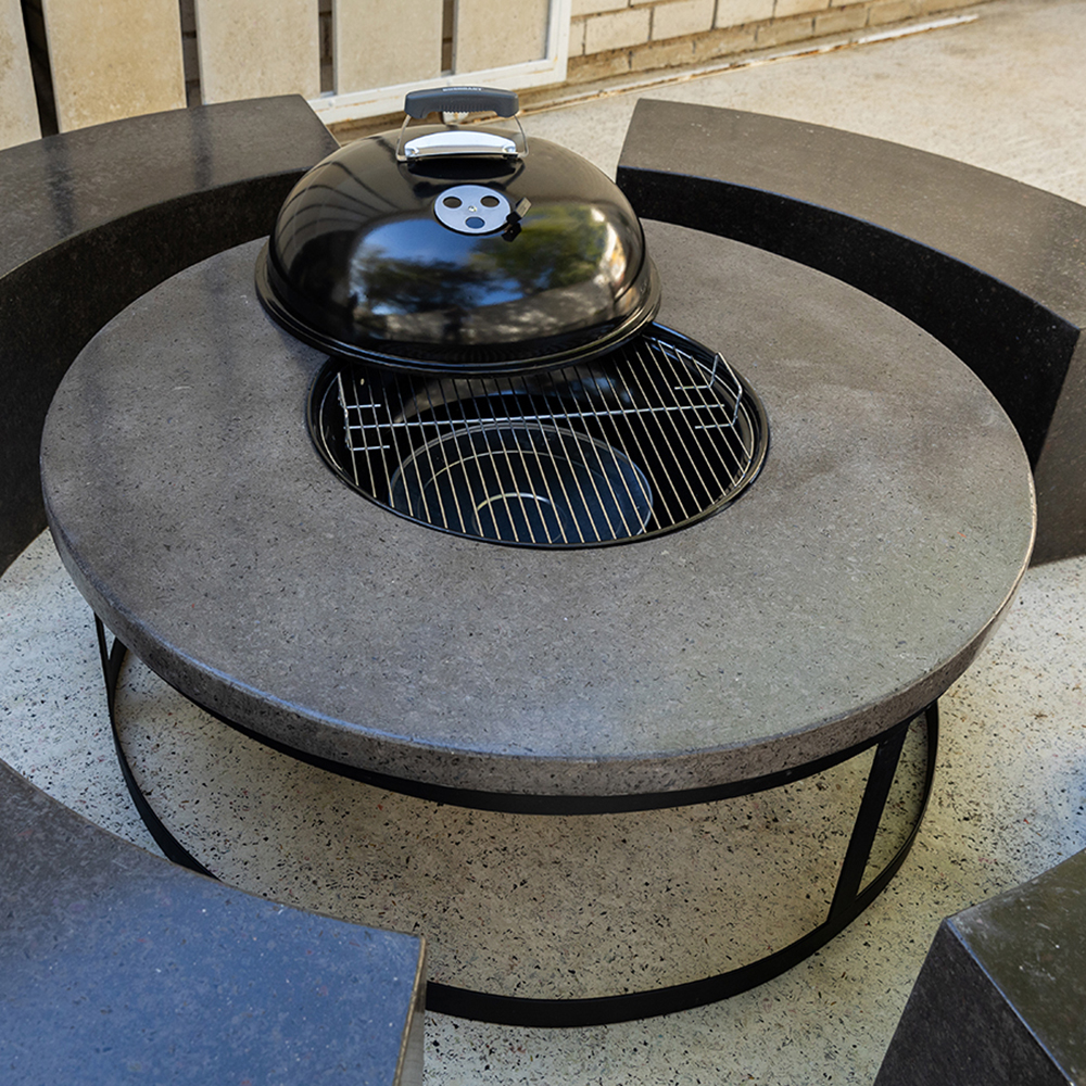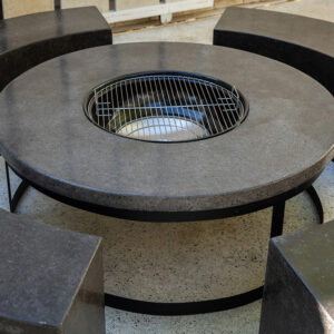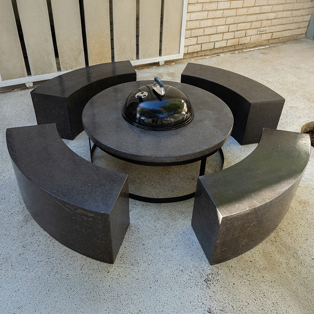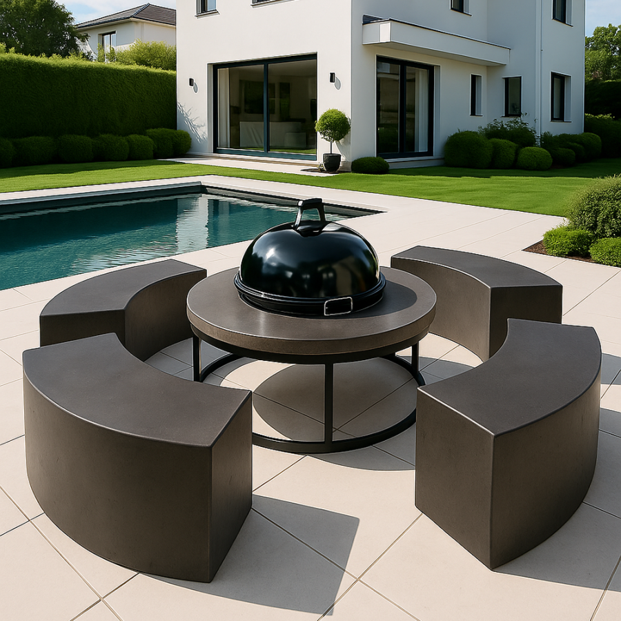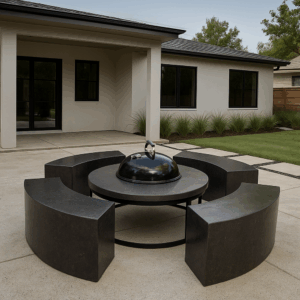 The Zerocrete Fire Pit Set is designed for gathering. Comprising a striking central fire pit table and four elegantly curved benches, this set provides a complete solution for outdoor entertaining. Each component is a testament to sustainable innovation, turning a massive volume of post-consumer waste into a durable, weather-resistant, and beautiful outdoor feature.
